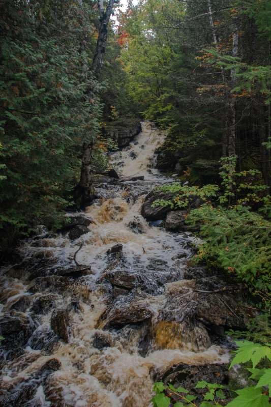 Then we continued to the falls, the other 3 couples left their vehicles at the bridge and walked to the falls. Not us! Our truck lives for back roads and we couldn’t deny him so off we went. There was one spot that was so washed out that Clint had to get out of the truck and get branches from the woods to lay across the road as there was a huge dip where the water was running. This is where we saw a beaver crossing the road in front of us! So random.